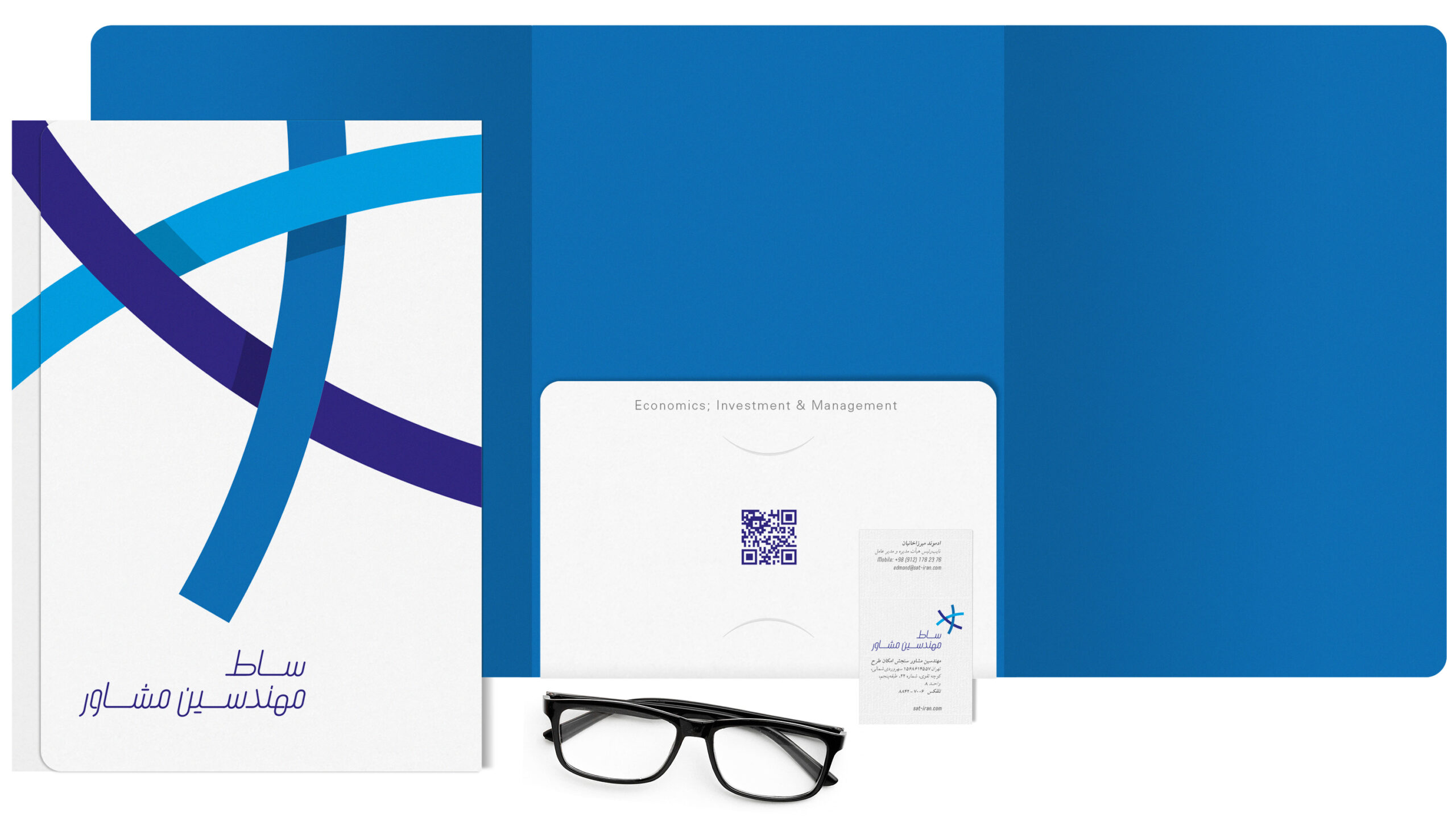 The logo concept, using three lines with three different shades of blue, conveys a multidimensional concept, where each line represents one of the three key areas of the company: economics, investment, and management. These lines not only refer to these domains but also simultaneously symbolize the three components of the company’s name: “Sanjesh” (Measurement), “Emkan” (Possibility), and “Tahr” (Design). The design reflects balance and focus while embodying diversity and abstraction through broader concepts like time, space, and cost. The three shades of blue represent trust, reliability, commitment, safety, and confidence. The symmetrical form, achieved with a slight rotation along the vertical axis, symbolizes the company’s dynamism and forward momentum, emphasizing progress and positive direction.